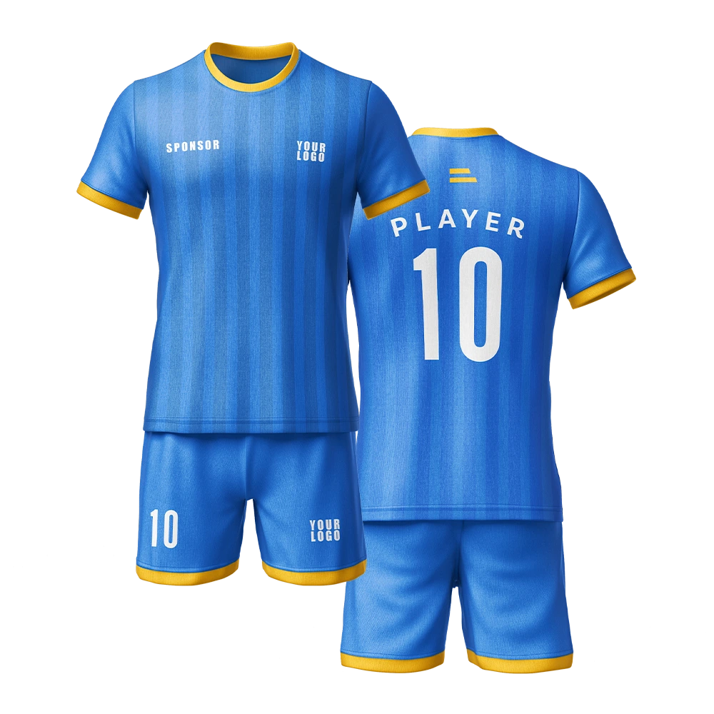 Customize your soccer team uniforms with personalized shirts, shorts, and socks featuring your logo, name, and number.